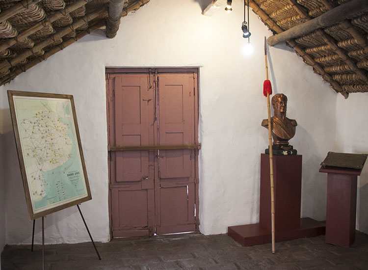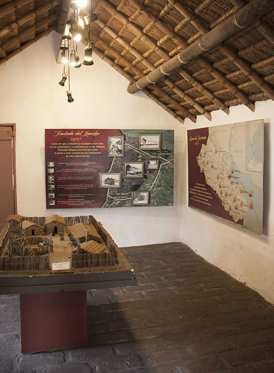El “Rancho” era una típica construcción bonaerense de su época, donde el techo esta materializado con un entramado de tacuara y troncos de palmera atados con tientos de cuero de potro, las paredes de adobe -barro y paja- de unos 45 cm de espesor y una planta tipo “chorizo”, con cinco habitaciones sucesivas con accesos independientes.